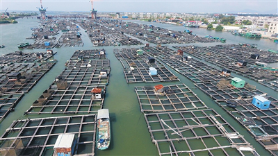 万宁市港北港成片的网箱。 特约记者 蒙钟德 摄