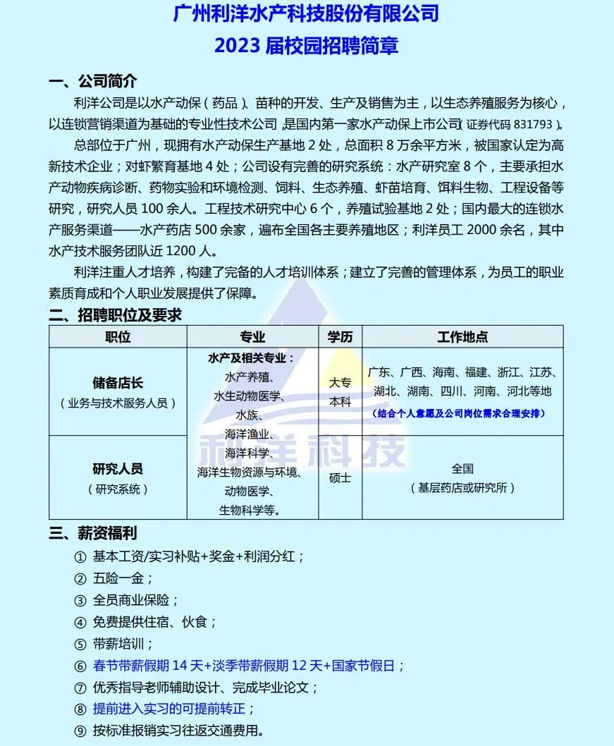 就业招聘 | ⑩广州利洋水产科技股份有限公司2023 届校园招聘简章