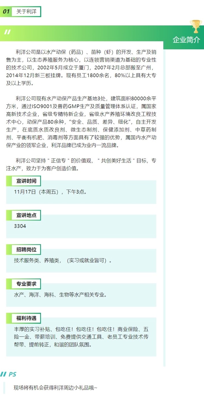 【就业招聘】广州利洋水产科技股份有限公司2024年度校园宣讲会