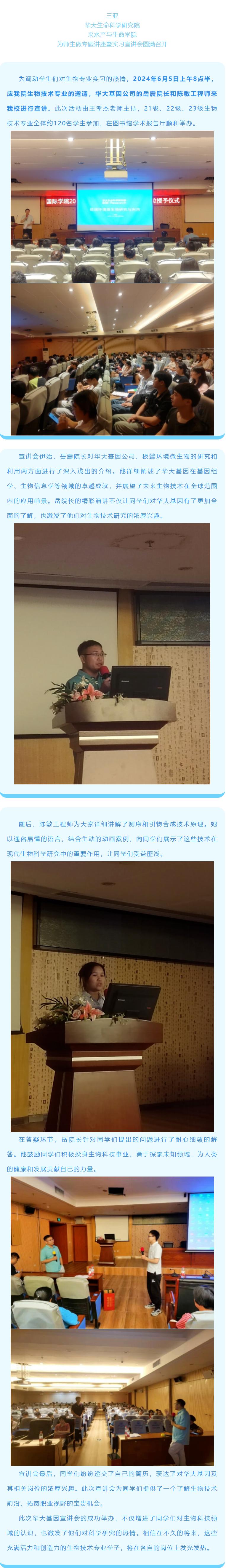 就业招聘 | 48 三亚华大生命科学研究院来公司为师生做专题讲座暨实习宣讲会圆满召开